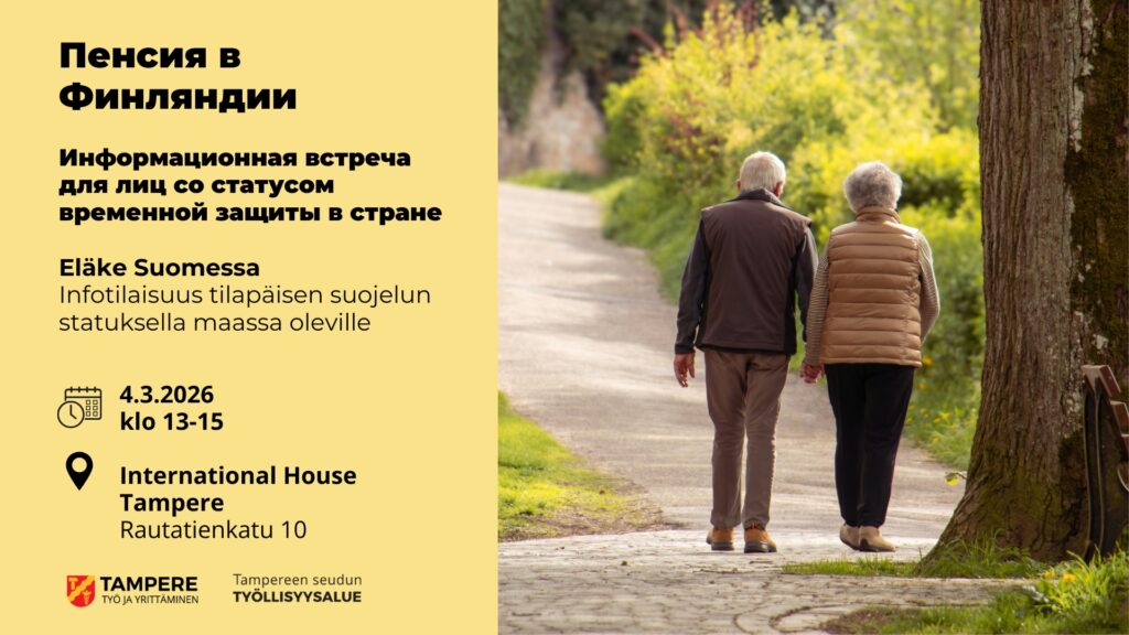 Добро пожаловать на информационную встречу, на которой расскажут о финской пенсионной системе и о том, как подать заявление на пенсию.